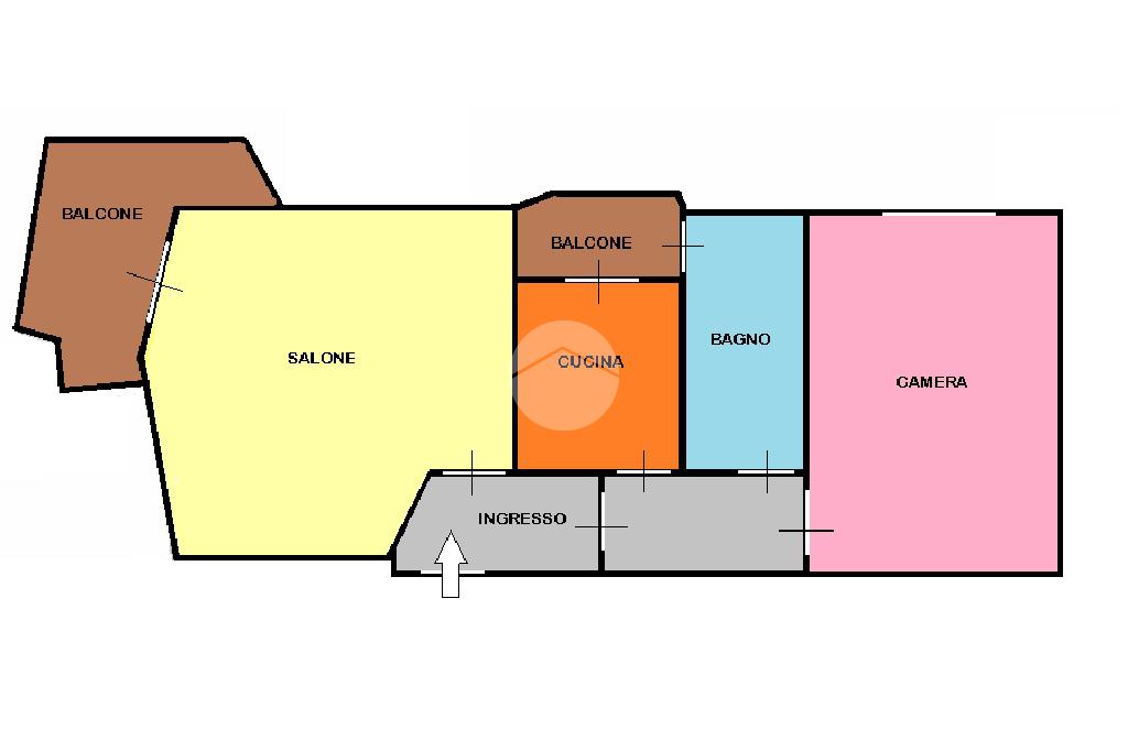 Internamente l'immobile si compone di ingresso, ampio salone con accesso su un comodo balcone abitabile, cucina, anch'essa con un piccolo balcone, bagno finestrato e camera da letto.